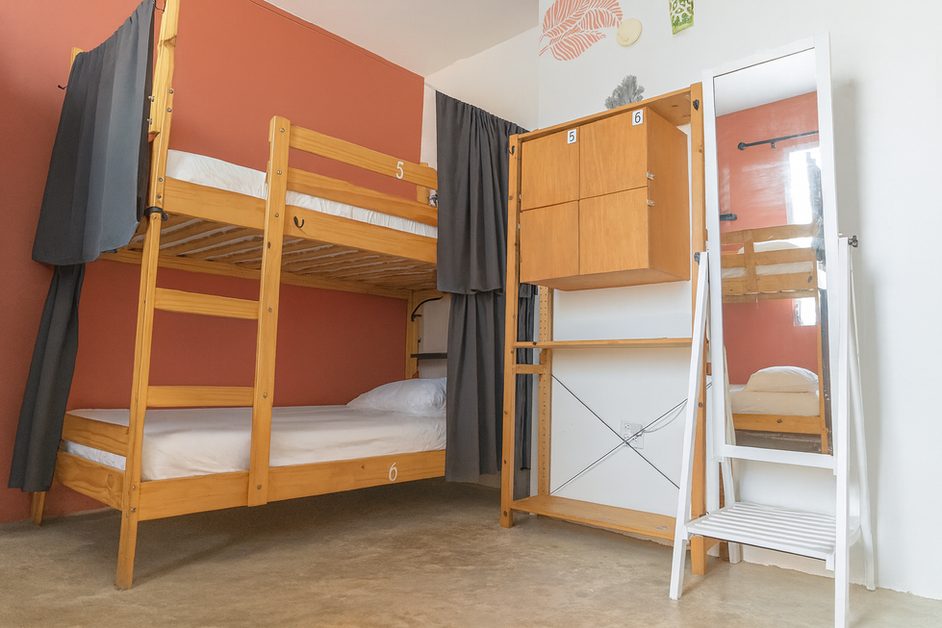 Exclusively for women and has one dorm with 3 bunk beds with air conditioning and a 5 bunk dorm with en suite bathroom on our upper deck. This room is located towards the back part of the house and next to one of the bathrooms for more privacy and comfort.